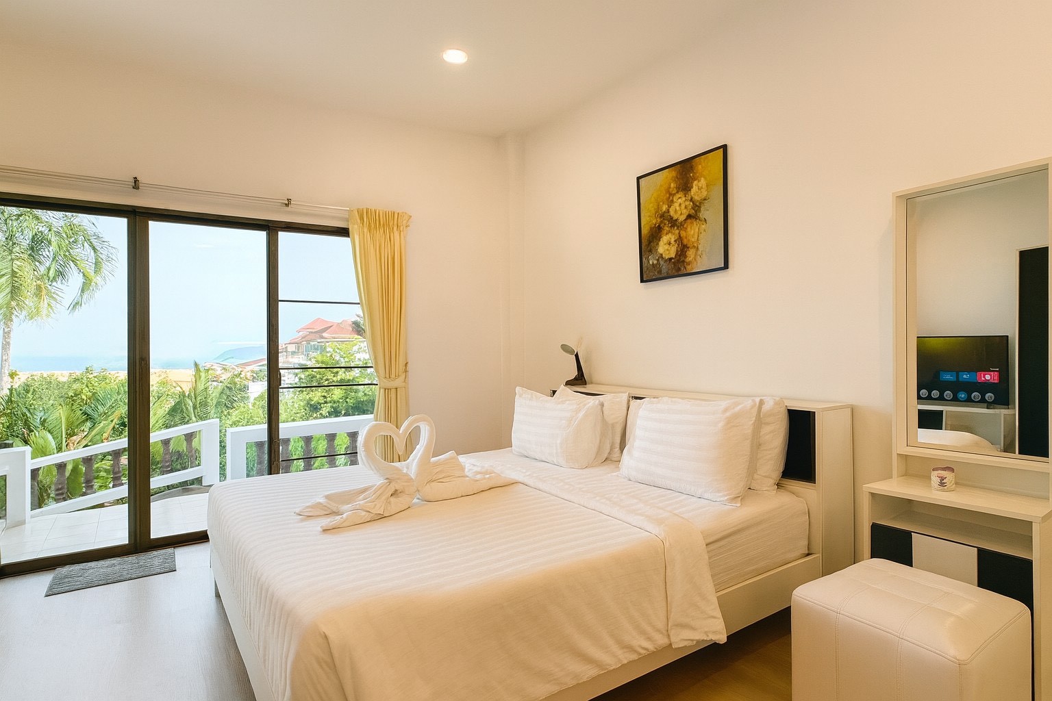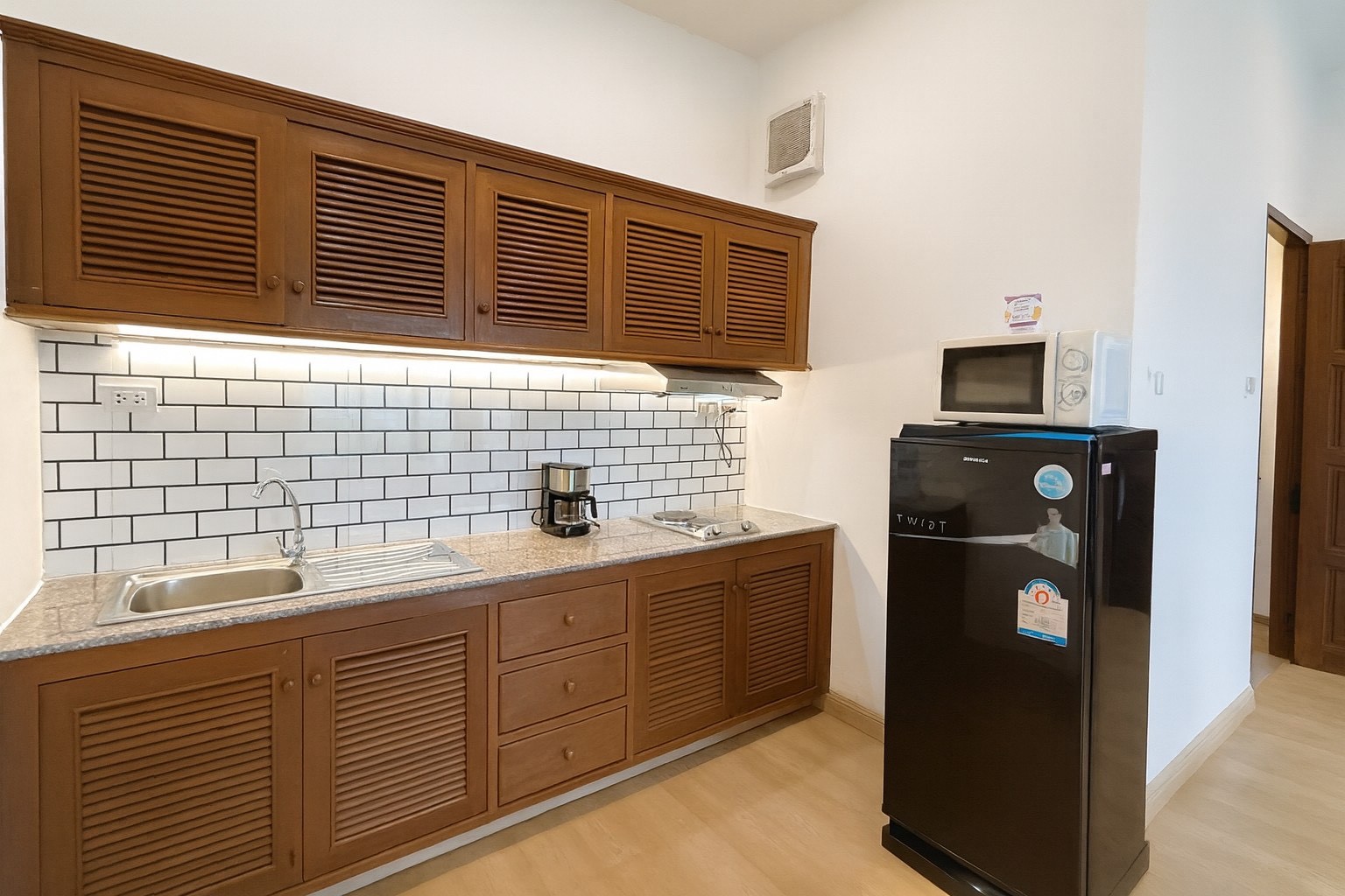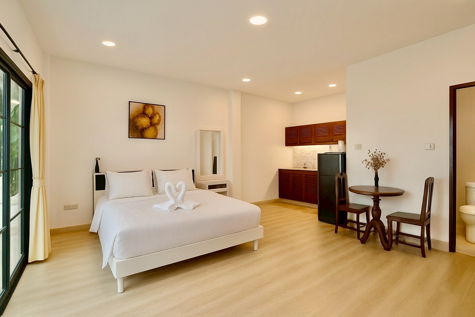 Discover a 42-square-meter studio apartment on the first floor, featuring a grassy area and garden in front of the unit. Enjoy sea views from the bedroom and the beauty of sunrise each morning. This apartment includes a spacious private balcony, an en-suite bathroom, a dining table for two, and a fully-equipped kitchen.