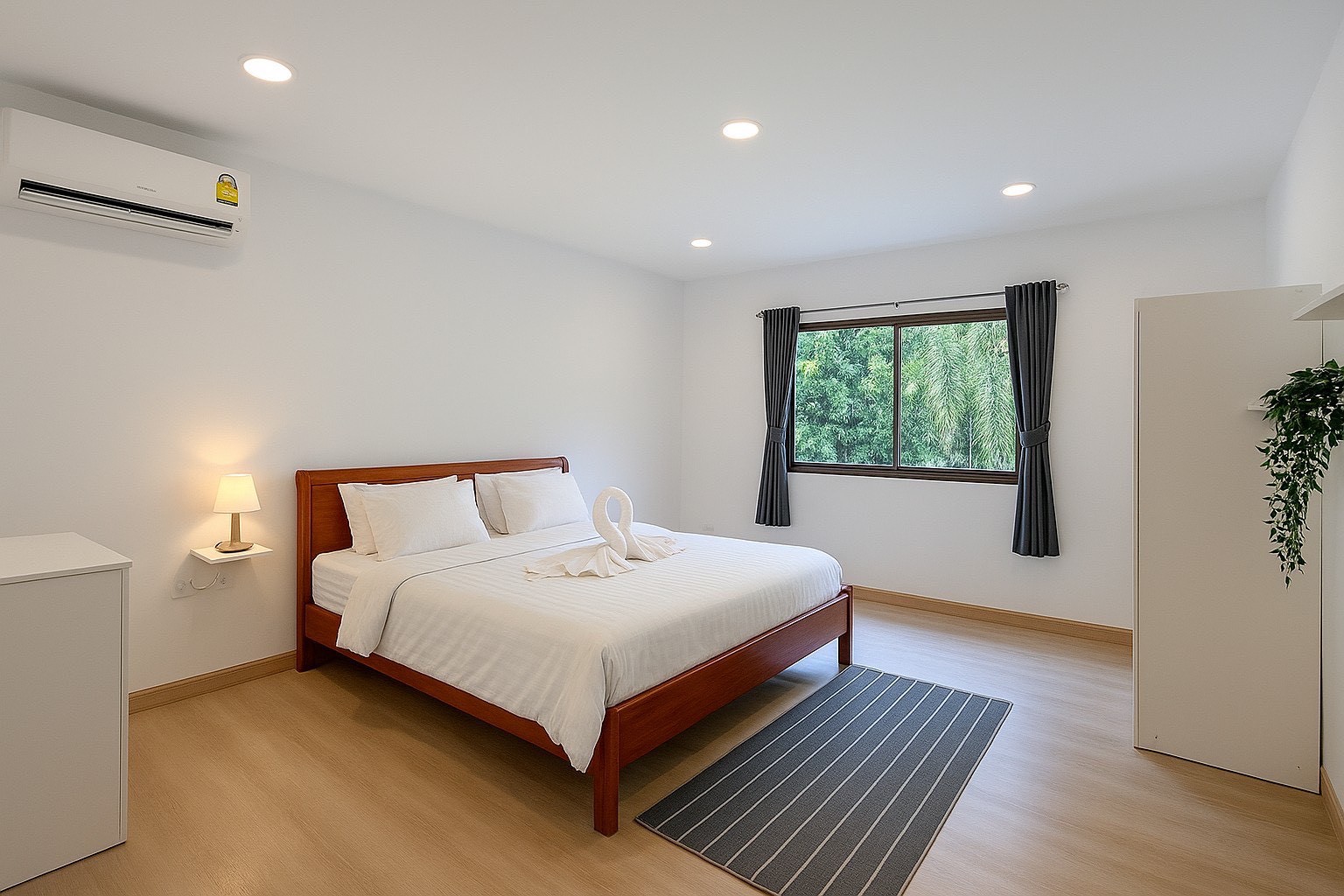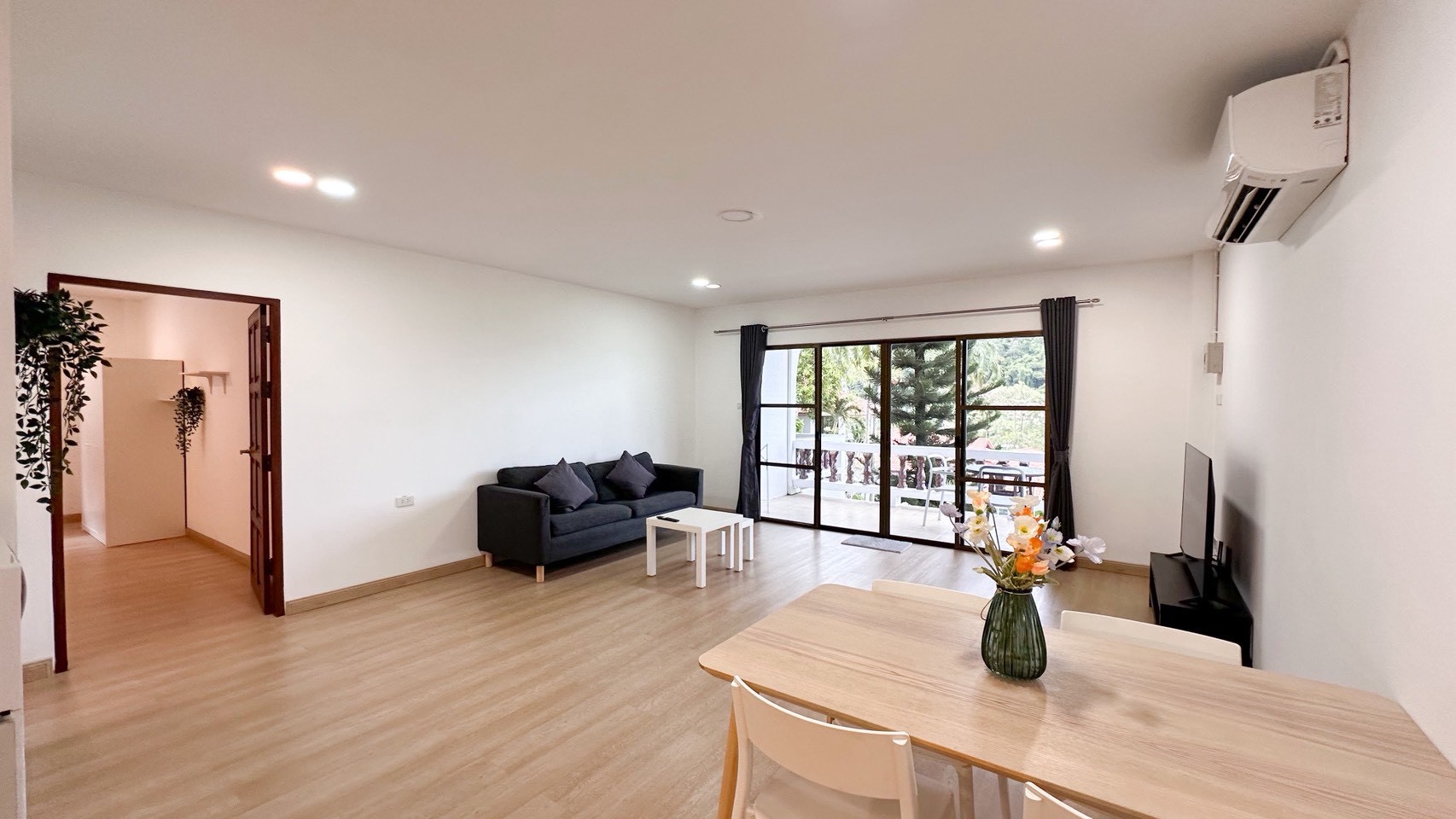 Discover a 75-square-meter one-bedroom apartment on the second floor, with picturesque mountain and sea views. Situated close to the swimming pool and parking area, this unit features a separate bedroom and living room, an en-suite bathroom, a dining table for four, and a fully-equipped kitchen. The apartment also includes a private balcony and a window in the bedroom, making it ideal for couples or families