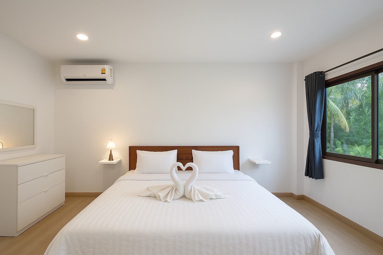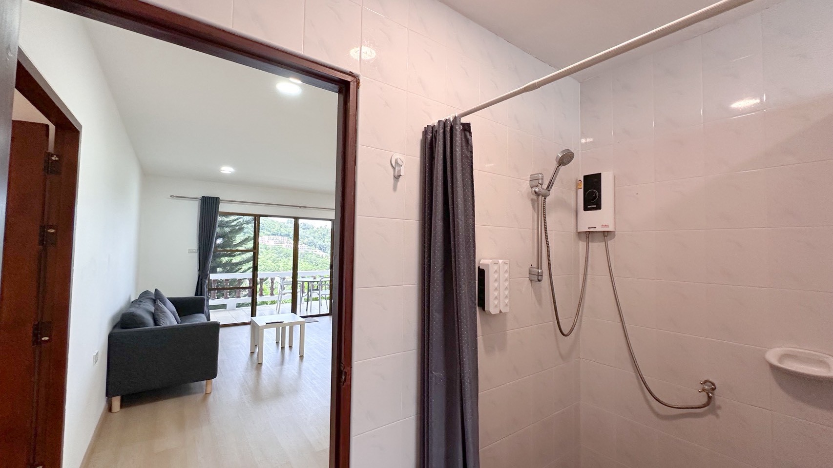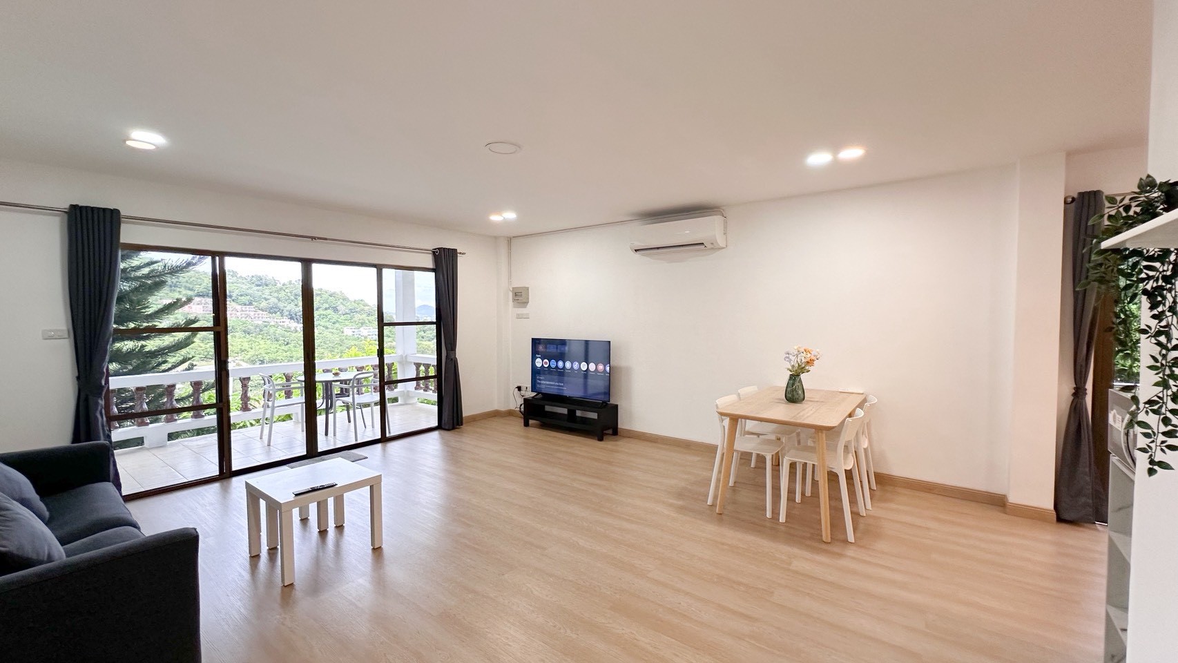 Discover a 75-square-meter one-bedroom apartment on the second floor, with picturesque mountain and sea views. Situated close to the swimming pool and parking area, this unit features a separate bedroom and living room, an en-suite bathroom, a dining table for four, and a fully-equipped kitchen. The apartment also includes a private balcony and a window in the bedroom, making it ideal for couples or families