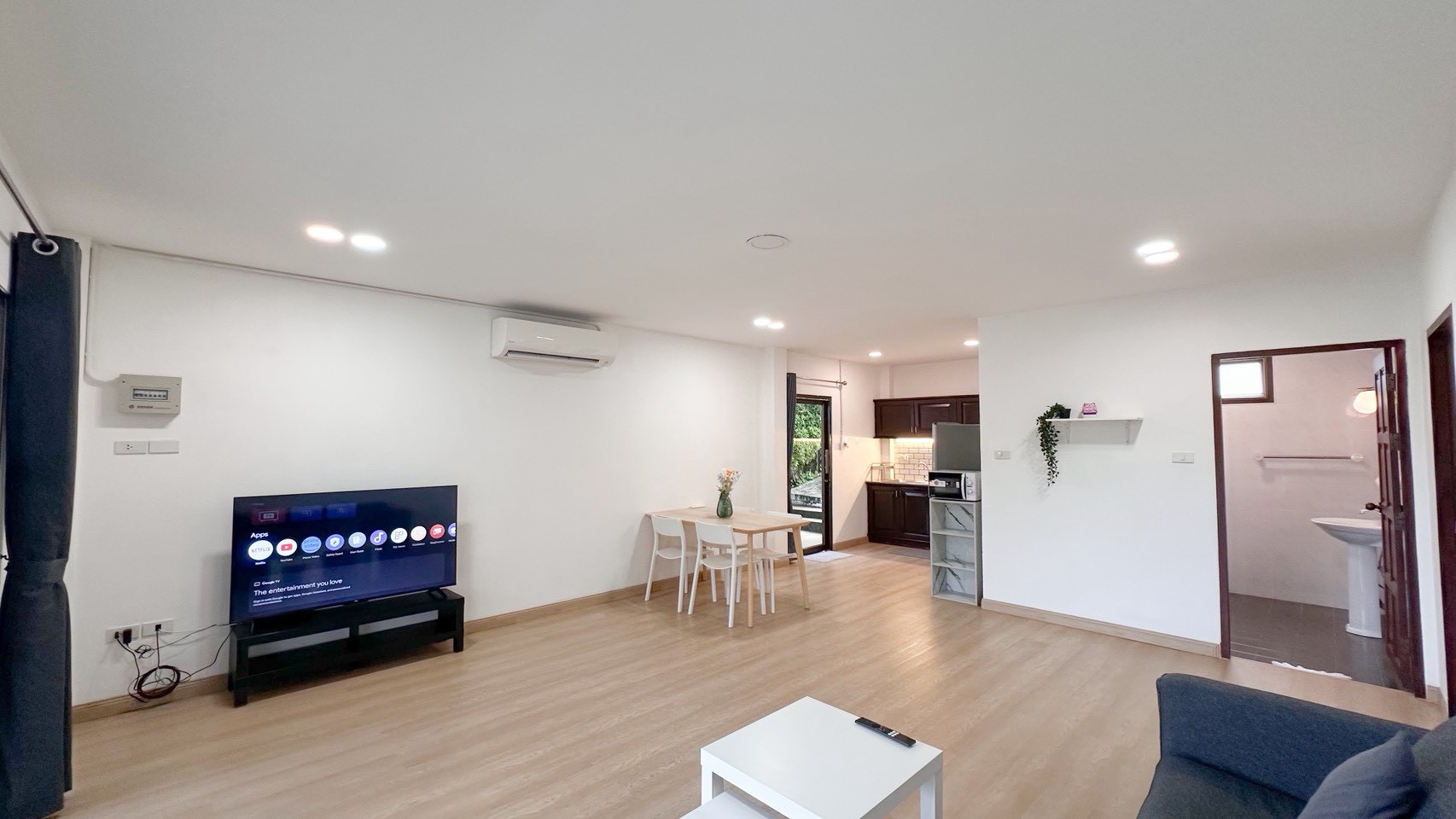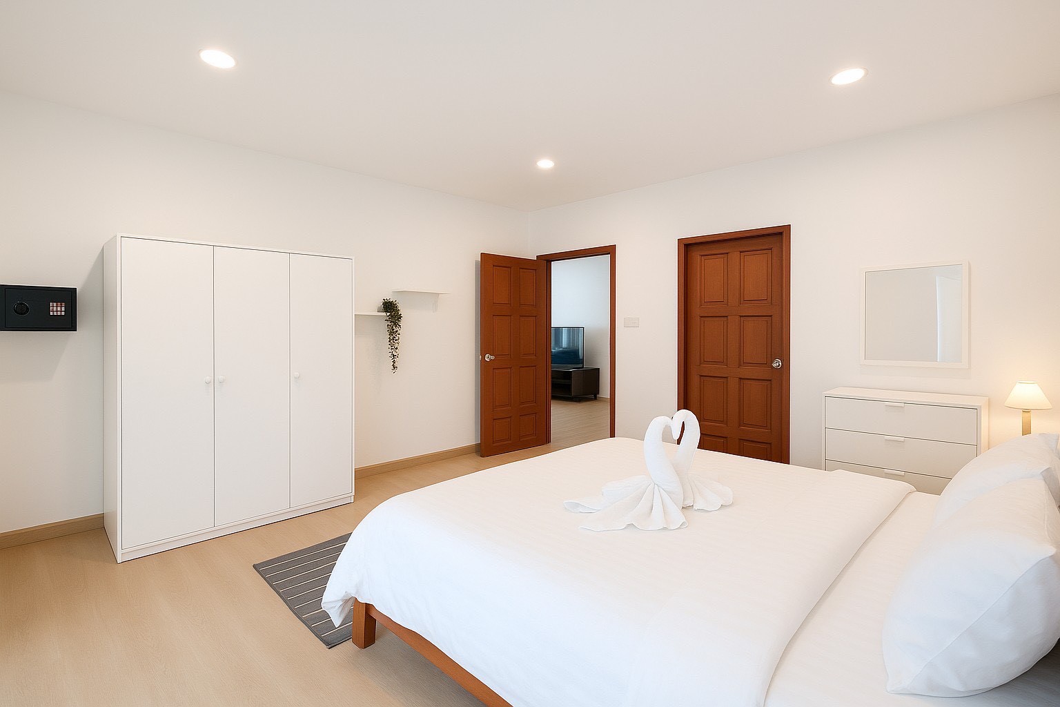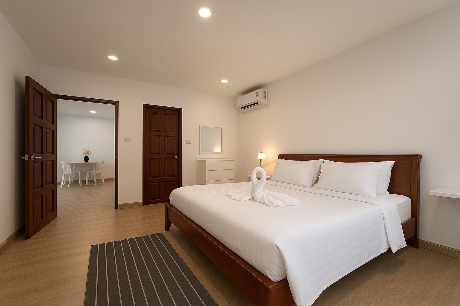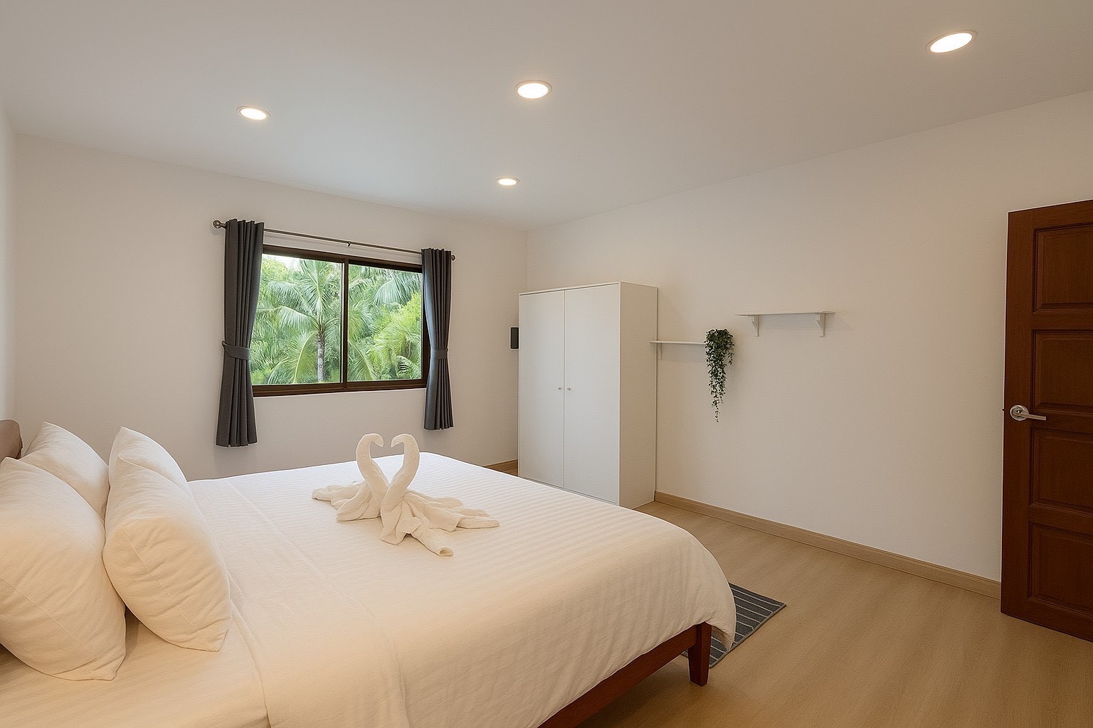 Discover a 75-square-meter one-bedroom apartment on the second floor, with picturesque mountain and sea views. Situated close to the swimming pool and parking area, this unit features a separate bedroom and living room, an en-suite bathroom, a dining table for four, and a fully-equipped kitchen. The apartment also includes a private balcony and a window in the bedroom, making it ideal for couples or families